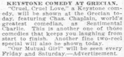 be shown at the Grecian today, featuring Chas. Chaplain,“