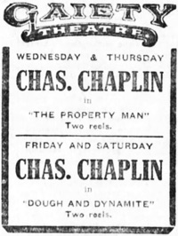 „CHAS. CHAPLIN in Dough and Dynamite Two reels“