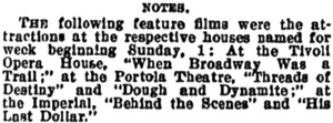 beginning Sunday, 1: (...) at the Portola Theatre, Threads of Destiny and Dough and Dynamite.“ (...)