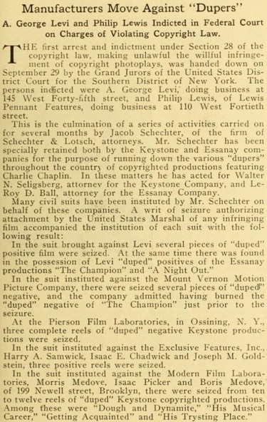 ten to twelve reels of ,duped´ Keystone copyrighted productions.