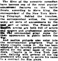 Chaplin a Hero in European Trenches, Washington Times, Feb. 19, 1916