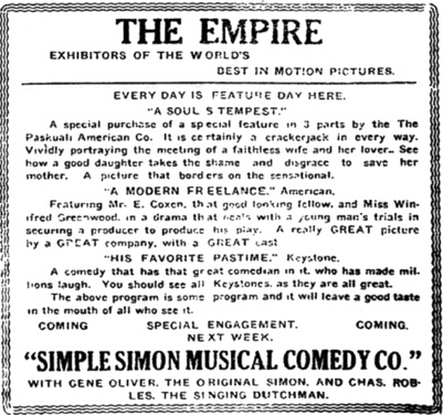 & Empire Theatre, exterior by day, poster unreadable, Frederick