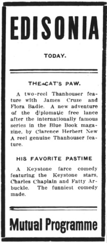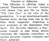 The Edisonia is offering today a special Thanhouser two--reel feature with James Cruz and Flo La Badie. „The Cats