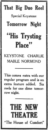 His Trysting Places is released by Keystone Nov. 9, 1914.