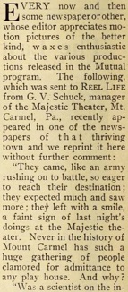 Majestic Theater, Mt. Carmel, Pa., recently appeared in one