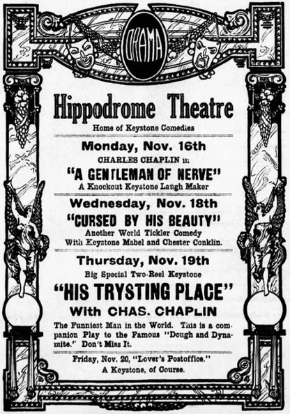 His Trysting Places is released by Keystone Nov. 9, 1914.