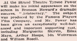 Power will make his initial appearance on the screen in Bronson Howard‘s dramatic success, Aristocrazy.
