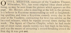 Editorial content. „Otto L. Meister, manager of the Vaudette