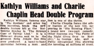 Der Hinweis hat den Titel: „Kathlyn Williams und Charlie
