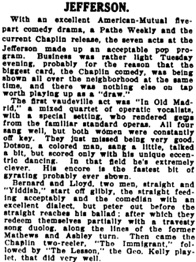 drama, a Pathe Weekly and the current Chaplin