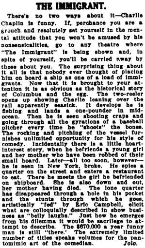 yourself in the mental attitude that you won‘t be amused by his nonsensicalities, go to any theatre where The Immigrant