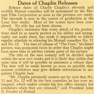 Release dates of Charlie Chaplin‘s eleventh and twelfth