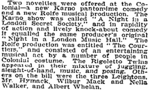 Editorial content. „NOVELTIES IN VAUDEVILLE. (...)