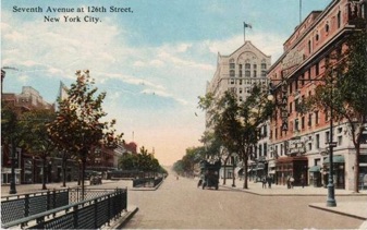 & Seventh Avenue at 126th Street with Alhambra Theatre at the