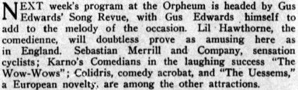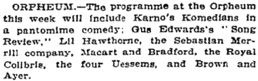 of Karno‘s Comedians, which are playing at the Orpheum
