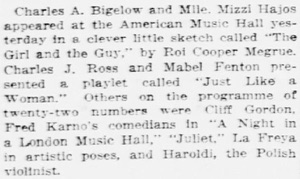 Editorial content. „Charles A. Bigelow and Mlle. Mizzi Hajos