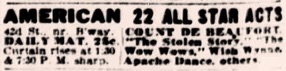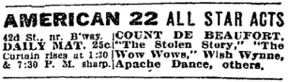 Advertisement. „American. 22 All Star Acts. Count de Beaufort,