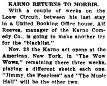 Nov. 28 the Karno act opens at the American, New York,