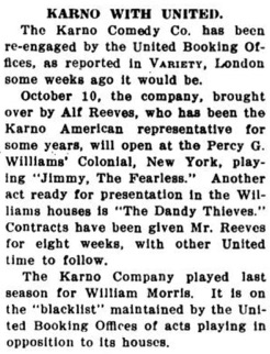 Editorial content. „Fred Karno‘s Company consisting of fifteen