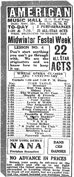 Curtain 1.30 and 7:30 P. M. Sharp. (...)