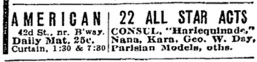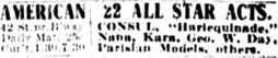 Nana, Kara, Geo. W. Day, Parisian Models, others.
