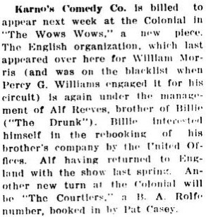 Editorial content. „Karno‘s Comedy Co. is billed to appear