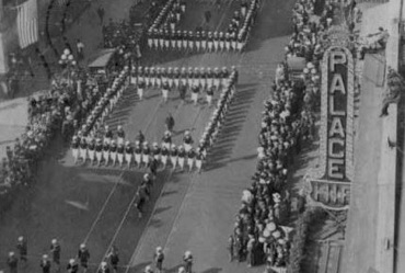 & Palace Hip (before Empress) Theatre, street scene with parade,