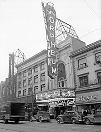 & New Orpheum, exterior by day, Granville Street, Vancouver,