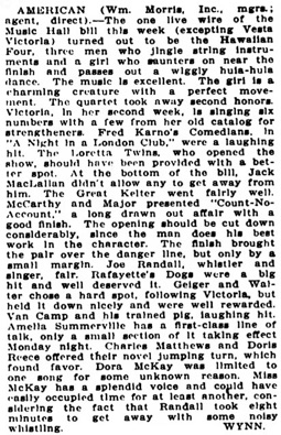 John J. (Wynn) O‘Connor, Variety, New York, February 4, 1911.