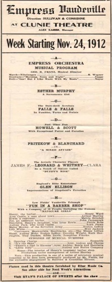 Nov. 24, 1912, Empress Orchestra, Esther Murphy, Falls & Falls,