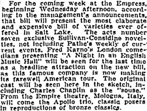 will be seen here in the sketch, including Charles Chaplin as the ,souse.‘“ (...)