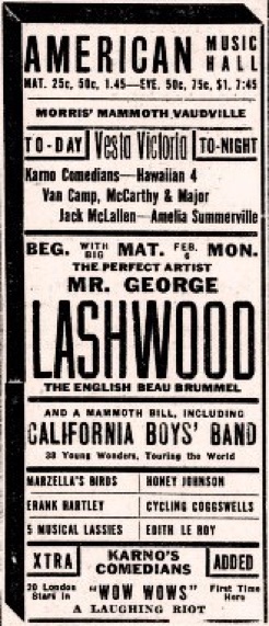 Advertisement. „American Music Hall.“ (...) „Extra Added.