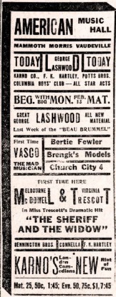 Advertisement. „American Music Hall.“ (...) „Karno´s London
