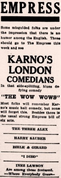 als Chaplin im Mai 1911 zum ersten Mal in Tacoma auftrittt. Vier