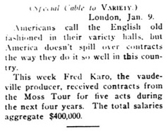 Variety, New York, January 10, 1913.