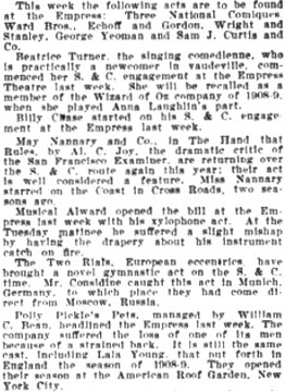 Editorial content. „Empress (Howard E. Robinson, mgr.;
