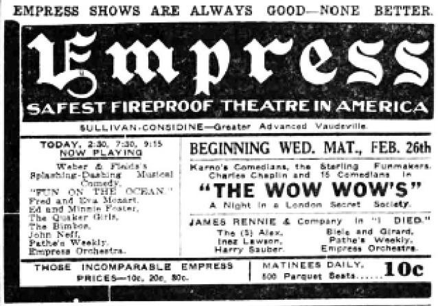 Advertisement. (...) „Empress.“ (...) „Beginning Wed. Mat.,
