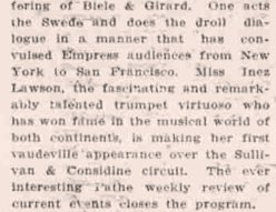 Einer der lustigsten Dialoge, die seit längerem im Vaudeville präsentiert wurden, ist die Darbietung von Biele & Girard.