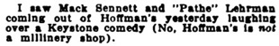 of Hoffman‘s yesterday laughing over a Keystone comedy (No, Hoffman‘s is not a millinery shop).“