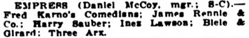 Fred Karno‘s Comedians; James Rennie & Co.; Harry Sauber;