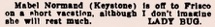 & Mabel Normand (Keystone) is off to Frisco on a short vacation,
