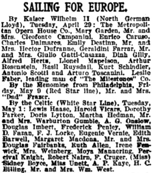 By the Celtic (White Star Line), Tuesday, May 1: