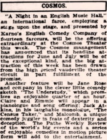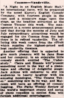 headline attraction at the Cosmos Theater this week.“ (...)