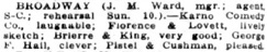 Broadway (J. M. Ward, mgr.; agent. S-C; rehearsal