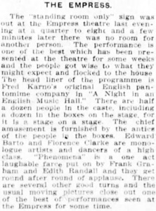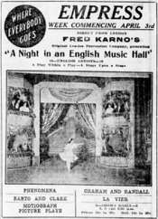 Sullivan–Considine Circuit. Hier geben Chaplin und die Karno Comedians in der Woche vom 3. April 1911 A Night