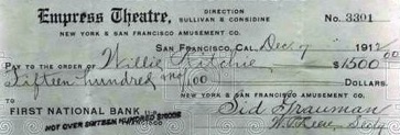 & EmpressTheatre Check pay to order to Willie Ritchie,