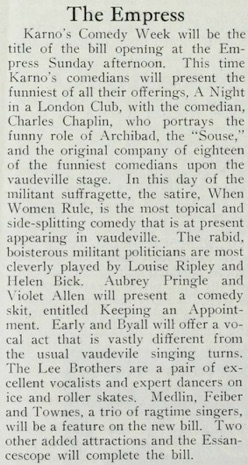 at the Empress Sunday afternoon. This time Karno‘s