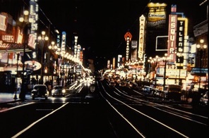 Market Street by night with St. Francis Theatre at the left side,