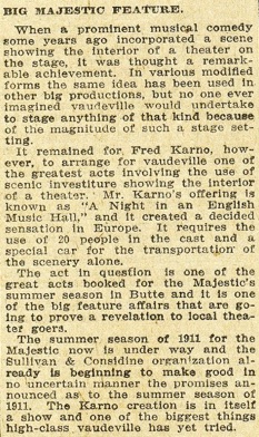 „It remained for Fred Karno, however, to arrange for vaudeville