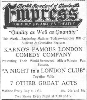 Chaplin in a traveling company appearing in Los Angeles
